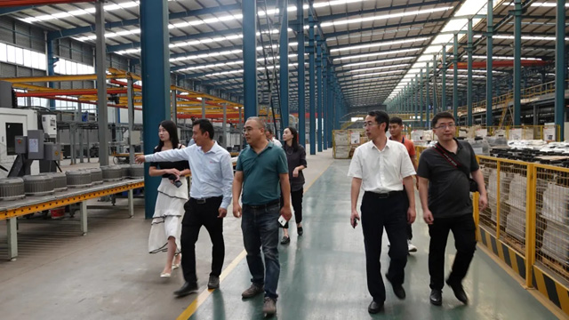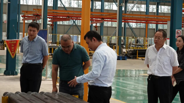 调研组参观了集团旗下山东正阳科技有限公司的生产车间,参观过程中,一行人就企业的运营情况、生产线运行、智能装配、产品性能、环保节能等话题展开了深入交流。正阳科技生产副总赵国梁、行政办公室相关人员全程陪同参观。